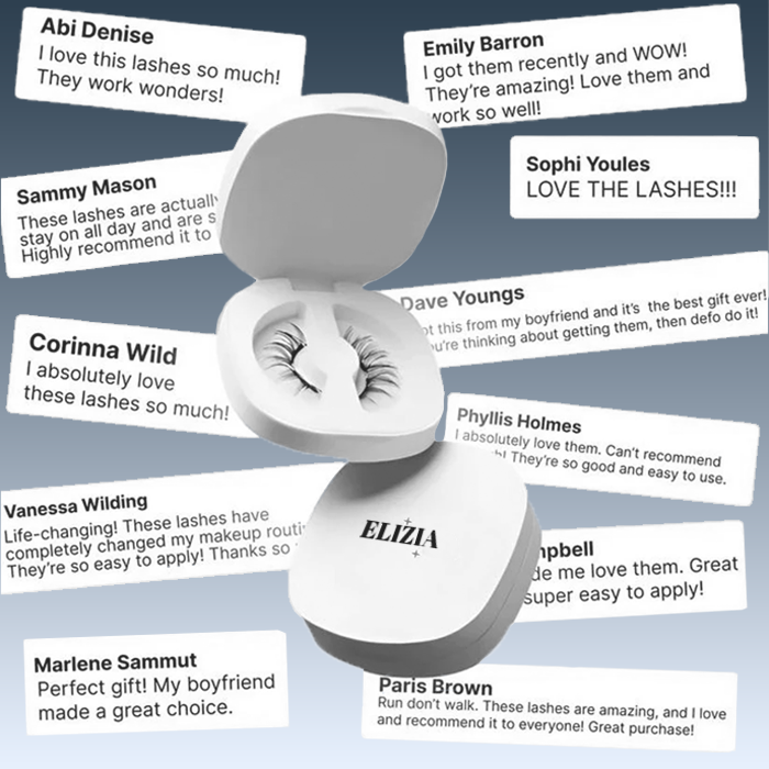 Flawless lashes in a flash — Elizia's soft magnetic design lets you snap them on in 3 seconds, and off in 2. No glue. No mess. No damage. Just clean, secure glam that protects your natural lashes. For beauty lovers who want speed, simplicity, and stunning results — without the fuss